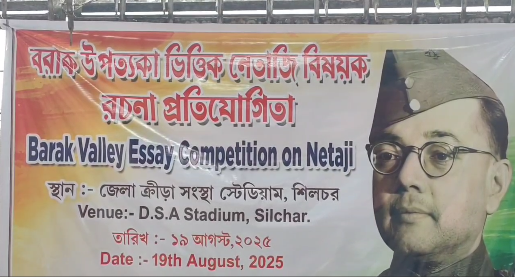 শিলচর জেলা ক্রীড়া সংস্থার মাঠে বরাক উপত্যকা ভিত্তিক নেতাজী বিষয়ক বৃহৎ প্রবন্ধ প্রতিযোগিতার উদ্বোধন করেন কাছাড়ের জেলা আয়ুক্ত মৃদুল যাদব। উপস্থিত ছিলেন শিলচরের বিধায়ক দীপায়ন চক্রবর্তী, পুলিশ সুপার নোমাল মাহাত্তা সহ অন্যান্য বিশিষ্টজনেরা। এই প্রতিযোগীতার আয়োজক ছিল শিলচর নেতাজি মূর্তি নবনির্মাণ স্থাপনা সমিতি।
