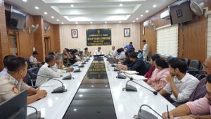 শ্রীভূমি জেলায় আসন্ন দুর্গা পূজা সুষ্ঠু ও শান্তিপূর্ণভাবে সম্পন্ন করতে বৃহস্পতিবার শ্রীভূমি জেলা আয়ুক্ত কার্যালয়ের সভাকক্ষে জেলা আয়ুক্ত প্রদীপ কুমার দ্বিবেদীর পৌরোহিত্যে এক প্রস্তুতি সভা অনুষ্ঠিত হয়েছে। শ্রীভূমির পৌরপতি রবীন্দ্র চন্দ্র দেব, সিনিয়র পুলিশ সুপার পার্থ প্রতিম দাস, প্রশাসনিক ও বিভাগীয় আধিকারিক এবং পূজা কমিটির কর্মকর্তাদের উপস্থিতিতে এই সভা অনুষ্ঠিত হয়।