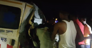 পাথারকান্দির সলগইয়ে ভয়াবহ দুর্ঘটনা। বেপরোয়া তেলের ট্যাঙ্কারের গতির জেরে দুর্ঘটনাগ্রস্থ মরদেহ বহনকারী অ্যাম্বুলেন্স। সলগই বাজা‌রে সংঘটিত ট্যাঙ্কার-অ্যাম্বুলেন্স সংঘর্ষে গুরতর জখম পাঁচজন। দুমড়ে-মুচড়ে গেছে অ্যাম্বুলেন্স, জেসিবির সাহায্যে উদ্ধার করা হয় অ্যাম্বুলেন্স চালককে। আহতরা চিকিৎসাধিন হাসপাতালে, পাঁচজনের মধ্যে তিনজনের অবস্থা সঙ্কটজনক।